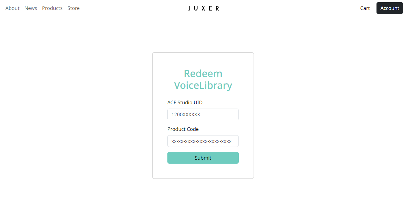 After purchasing a voice library on the JUXER online store, you will receive a product redemption code in the following format: